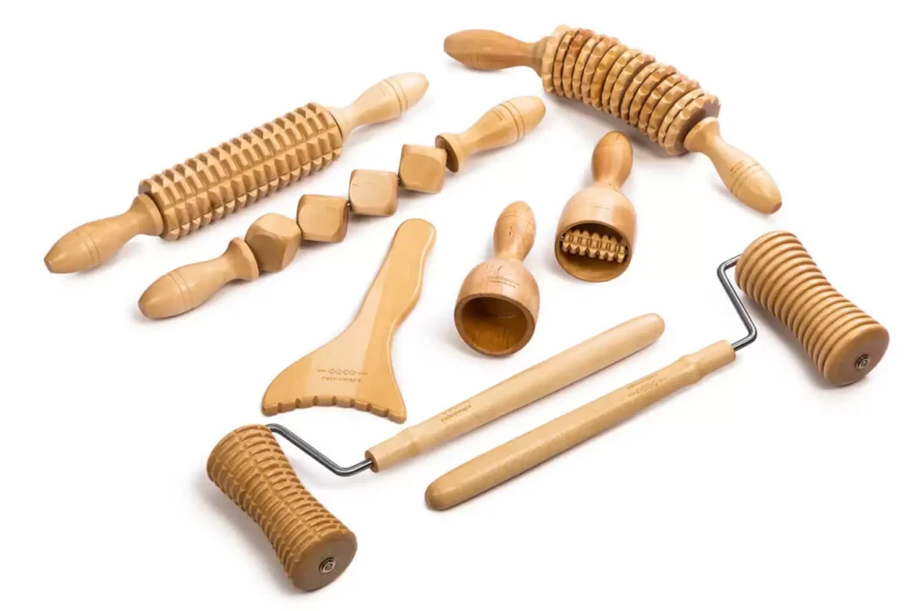 Maderoterapia Polska to holistyczna metoda pracy z ciałem łącząca manualny drenaż limfatyczny z intensywnym masażem za pomocą specjalnych, anatomicznie zaprojektowanych drewnianych narzędzi.